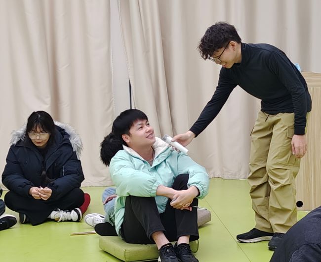 活动开始前,赖国升详细介绍了本次团辅的目标及规则,强调团队契约,为活动的有序开展营造安全、信任的氛围。破冰之旅率先打破初见的拘束。“情绪猜猜猜”环节中,同学们各展才能,通过肢体语言演绎喜怒哀惧等情绪,并分享身体反应——“紧张时手心冒汗”“开心时心跳加速”。这一活动强化了情绪识别能力,深化了情绪与身体关联的认知。紧接着,精心筹备的“情绪温度计”环节,同学们绘制个性化情绪图谱,标注近期事件中的情绪强度,并分享考试压力、人际矛盾等真实经历。赖国升适时引导,分析情绪触发点,强调“情绪无对错,读懂需求是关键”,帮助大家正视情绪根源。随后,在知识普及环节,他介绍了“情绪急救箱”,聚焦实践技能,同学们通过模拟演练,掌握“危机干预+日常调节”的双重策略。活动最后,他与同学们共同回顾全程的精彩与感动,鼓励大家将活动中掌握的技能应用到日常生活中。