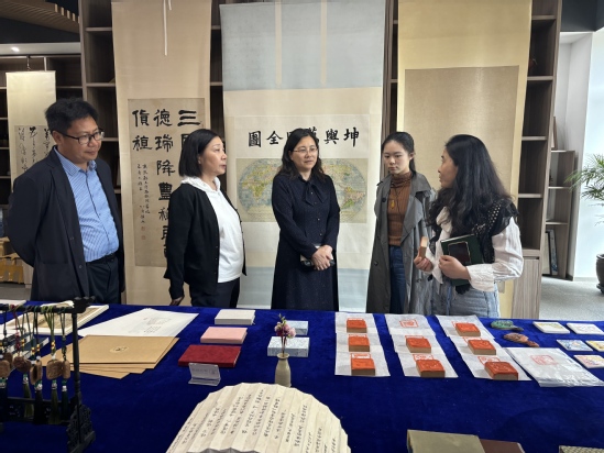 魏萍介绍了学校的办学概况和育人成果。她指出,学校始终践行黄炎培先生的“手脑并用、双手万能”的职教理念,秉持职业教育服务国家战略的宗旨,积极推动国际化办学,学校将发挥职业教育国际化平台与跨境电商的专业优势助力非遗等优秀传统文化走向世界。