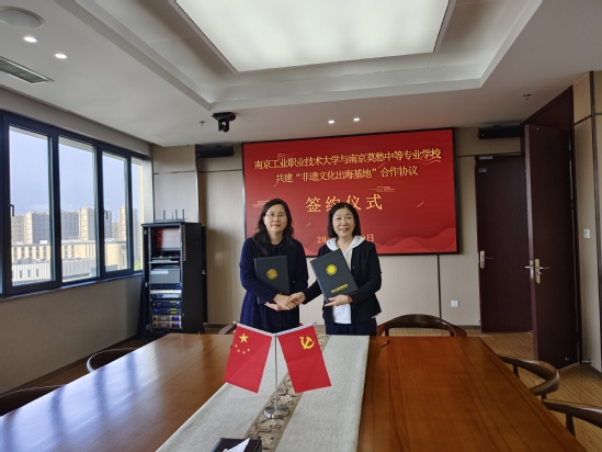 5月9日下午,pp电子官网与南京莫愁中等专业学校在莫愁中专高庙校区签署合作协议,正式启动“非遗文化出海基地”建设项目。学校党委常委、副校长魏萍,南京市莫愁中等专业学校校长朱国美作为双方代表出席签约仪式,两校相关负责人及骨干教师共同参与活动。