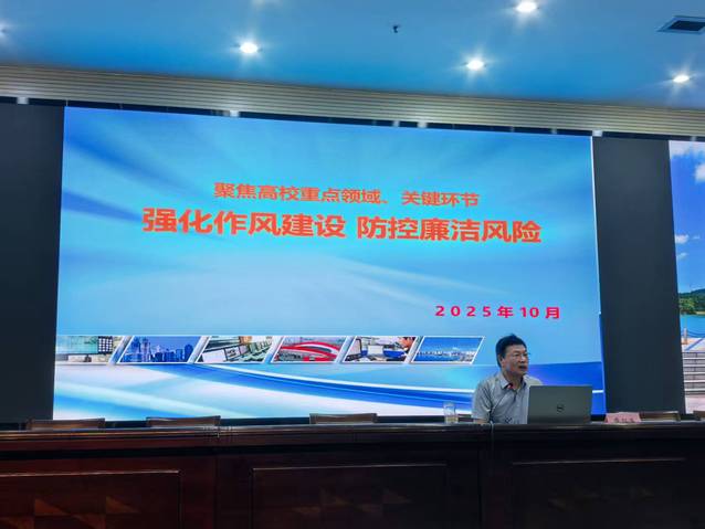 蒋仁海以《聚焦高校重点领域、关键环节——强化作风建设 防控廉洁风险》为题,理论阐述和案例剖析相结合,做了一场生动警醒的专题报告。报告主要分三个方面,一是阐释了中央八项规定精神内涵,二是深入剖析了高校在重点领域和关键环节中存在的廉洁风险点,三是交流了巡视中发现高校的9个方面的问题。
