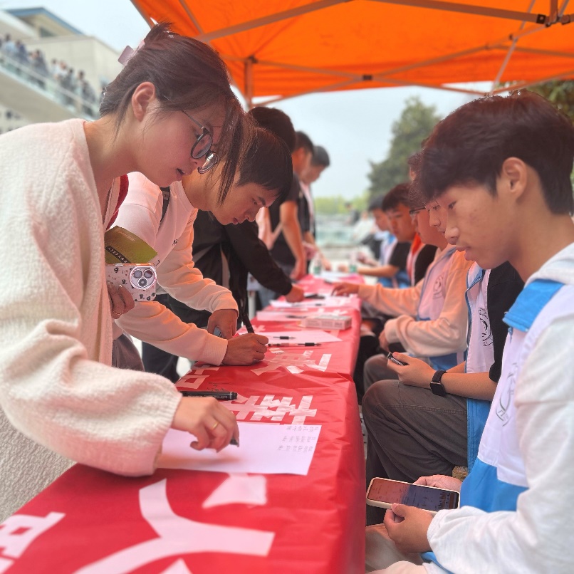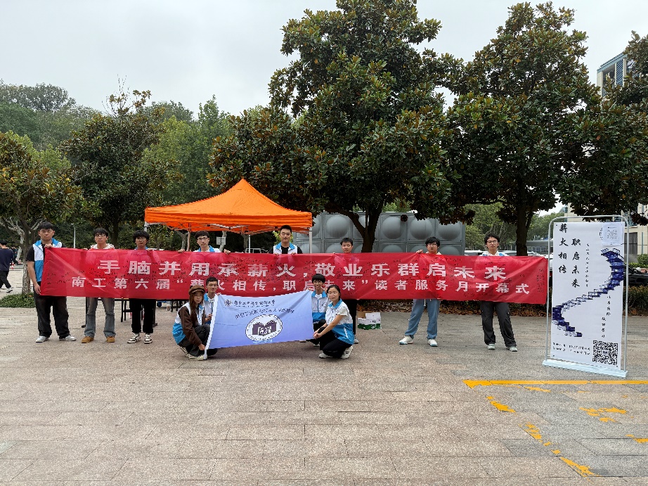 本届读者服务月由校图书馆主办,图书协会承办,以“薪火相传,职启未来”为核心主题,旨在传承和弘扬黄炎培先生“手脑并用、做学合一”;“使无业者有业,使有业者乐业”的职业教育思想。下午两点,开幕式在温馨有序的氛围中拉开帷幕。活动现场,图书协会的志愿者们积极引导,热情讲解,同学们纷纷驻足,并依序在“手脑并用承薪火,敬业乐群启未来”的主题横幅上郑重签名,积极响应学校共建书香校园的倡议,展现了南工学子对阅读的热忱和对校园文化的认同。