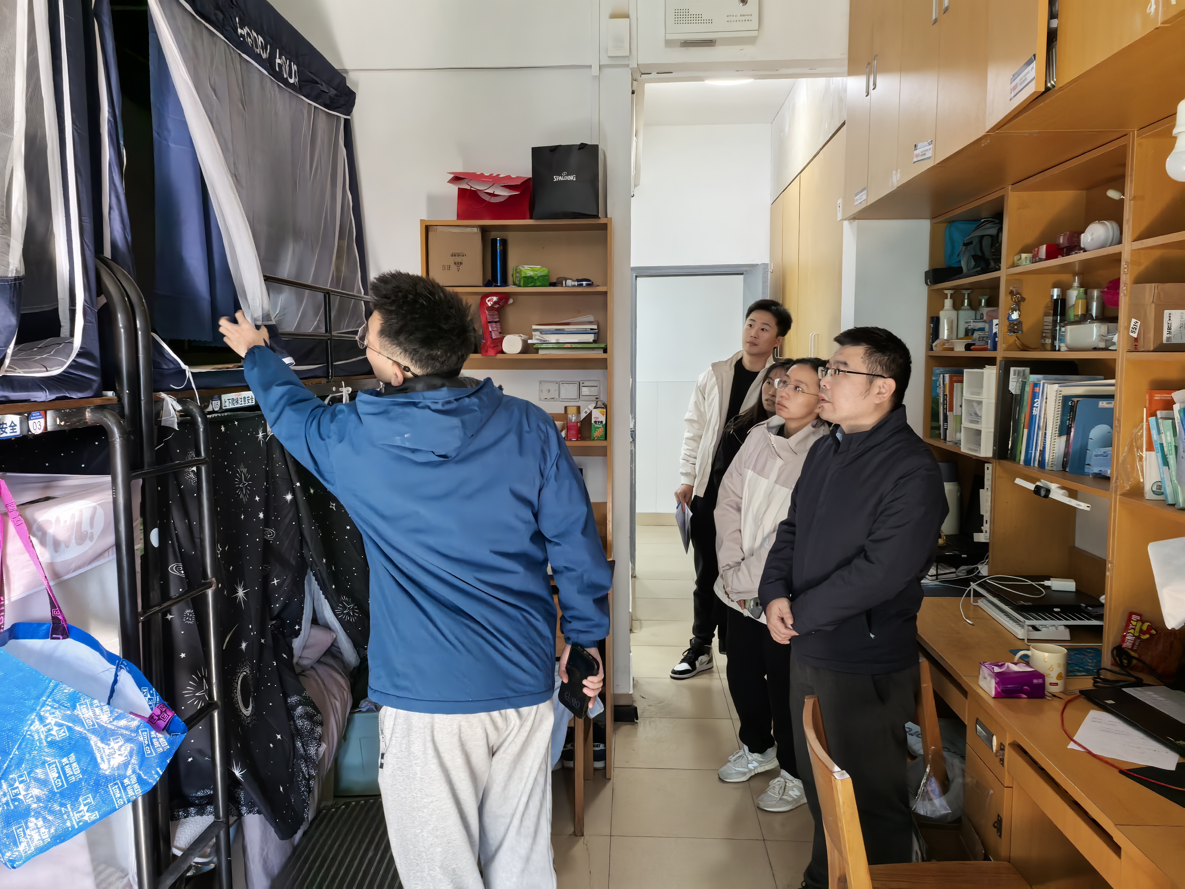 在工作中,检查队伍本着高度认真负责的态度,深入每一间学生宿舍,通过与宿管阿姨细致交流,了解学生平时生活状况,围绕学风引导、安全防范与内务卫生等方面进行重点排查。