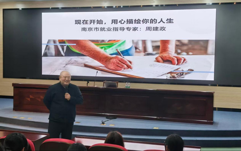 讲座伊始,周建政以幽默风趣的语言和紧贴“Z世代”热点话题,迅速点燃了全场气氛。他从职业规划的本质切入,指出大学四年是历练职场技能的黄金时期。他巧妙地将简历比作“个人说明书”,提醒同学们大学四年的每一份经历都是填充这份说明书的重要素材。同时,他鼓励同学们保持开放心态,无论是专注学业还是尝试创业,都是在锻造发现需求、解决问题、实现价值的综合能力,这些都是未来职业发展的基石。面对快速变化的就业市场,他建议同学们要“眼观六路,耳听八方”。在能力培养上,必须“软硬兼施”:硬技能如编程、数据分析是进入行业的敲门砖;而软技能中,他尤为推崇沟通与共情能力。在市场洞察上,他通过对招聘数据的分析,指出与数字、计算机、AI相关的岗位需求持续旺盛,并提醒大家要关注如储能等新兴行业的政策与全球趋势,让技能储备与市场方向同频共振。最后,周建政为同学们描绘了一幅清晰的大学四年进阶路线图。他从探索适应期的基础学习,讲到实践成长期的专业深化,再到选择提升期的科研竞赛,最后到决策呈现期的求职冲刺。这一分阶段策略为新生们提供了切实可行的行动指南,让大家明白每一个阶段都有其核心任务,唯有步步为营,才能最终在毕业时自信地呈现自己。