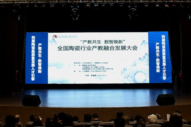 全国陶瓷行业产教融合发展大会暨全国陶瓷行业产教融合共同体(陶瓷职业教育集团)换届会议于10月22日在景德镇隆重举行,大会以“产教共生·数智焕新:构建陶瓷高质量发展人才引擎”为主题,共商陶瓷行业产教融合新路径。本次大会有来自全国18个省份的500余名院校代表、企业精英、行业协会专家参加。会上,发布了2025年全国陶瓷行业优秀产教融合案例、共同体(职教集团)专家委员会名单,表彰了突出贡献单位、优秀工作者,并完成了与头部企业签约。pp电子官网当选为共同体(职教集团)副理事长单位并被授予突出贡献单位称号,艺术设计学院副院长孙静松当选为共同体(职教集团)专家委员会委员,艺术设计学院工业设计系教师王晓航被授予优秀工作者称号。会上,艺术设计学院还与江西陶瓷工艺美术职业技术学院创意设计学院签约结为战略合作伙伴。同时,王晓航作为职业院校代表在大会专家论坛上作题为《“专业特区-艺术工坊-产业学院”三维融合模式的产教融合新路径》的主题交流发言。