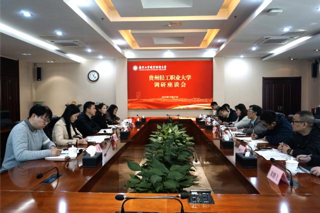10月27日上午,贵州轻工职业大学党委副书记、校长杨天仪一行来校调研,pp电子官网党委书记谢永华在行政楼辅楼一楼会议室接待来宾,相关职能部门负责人参加座谈。
