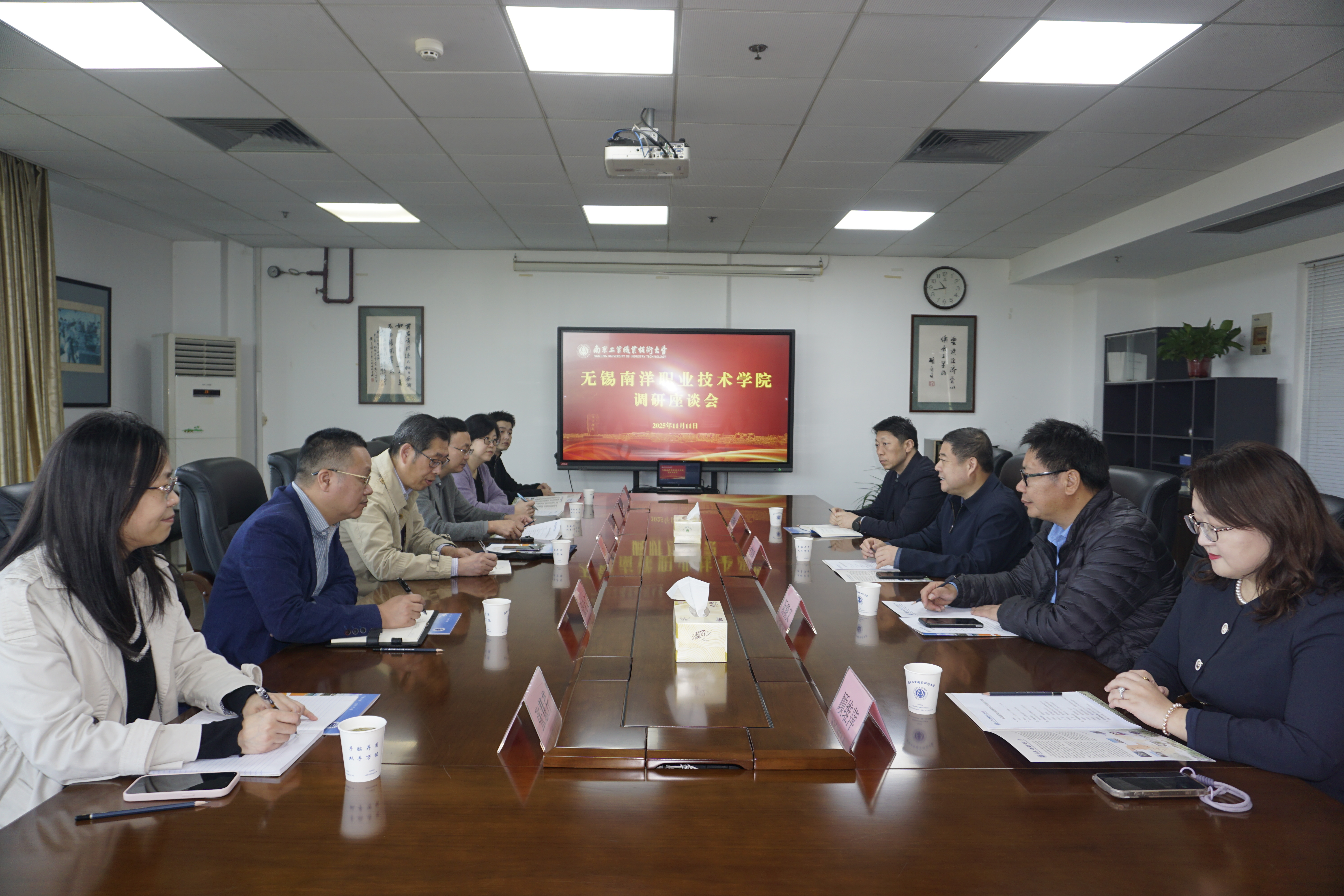 11月11日上午,无锡南洋职业技术学院发展战略委员会副主任吴雪纯一行来校调研交流。pp电子官网党委常委、副校长崔新明在行政楼401会议室接待了来宾,学校相关部门负责同志参加座谈。