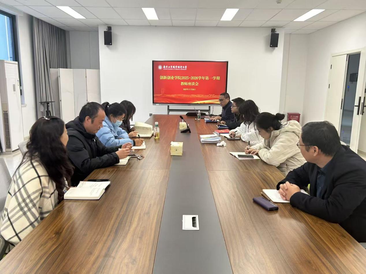 为深入落实立德树人根本任务,精准把脉教学实况,持续提升人才培养质量,11月27日,创新创业学院在双创大楼A303会议室分教研室召开2025年秋季学期师生代表座谈会。此次座谈会旨在倾听教学一线声音,凝聚发展共识,搭建师生交流的桥梁,为深化创新创业教育教学改革、优化教学管理提供重要依据。学院全体任课教师及各学院部分学生代表参与座谈。