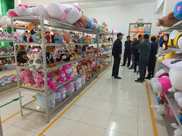 毛文娟对“南工—苏豪” 校企合作取得的成果给予高度肯定。她指出,苏豪作为江苏省市场影响力位于前列的500强企业,与南工在人才培养、横向项目、实习就业等方面开展了深入地合作,形成了优势互补、协同发展的良好格局。她希望以此次交流为契机,推动学校“工科+文科”专业群与企业在生产制造、商业运营、艺术设计等领域全面合作,在学生实习就业、教师实践锻炼、产学研项目合作等方面构建长效机制,助力企业创新发展与学校人才培养质量双提升。阮晓文结合自身成长经历,表达了对上马玩具长期发展的敬意,希望双方围绕玩具宠物产业发展、人才联合培养、实践课程教学、实习就业进行深度合作。孙静松向苏豪、弘业、永恒三家企业赠送自己创作的艺术作品以示感谢。会谈结束后,三方人员共同参观了上马玩具的生产车间、研发中心及产品展示区,从原料加工、模具制作到成品组装,详细了解了玩具生产全流程。