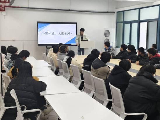 为深入推进学风建设,营造积极向上、互助共进的宿舍氛围,以优良舍风促进优良学风,12月17日下午,机械工程学院在海棠苑党建活动室组织召开“优学风·正舍风·树新风”宿舍长专题培训会。会议邀请了荣获“标杆宿舍”称号的机自2311班李火凤同学和获评“五星宿舍”的机自2312班郭申健同学作分享。学院辅导员张哲、周亚军及宿舍长代表参加了本次培训会。