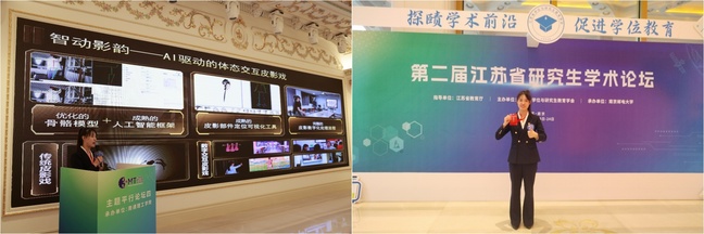 12月24日,第二届江苏省研究生学术论坛上,艺术设计学院数媒2212班皇甫永仙同学作为学校首批本科生代表,在群英荟萃的舞台上精彩亮相,荣获“优秀学术报告”荣誉。本次论坛引入国际通行的“三分钟论文演讲”(3MT)竞赛模式,要求参赛者在180秒内精准凝练科研精髓,这对逻辑表达与舞台驾驭力提出了极致考验。