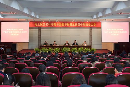 3月19日下午,pp电子官网在学术交流中心二楼报告厅召开了中层干部集中换届及选拔任用动员大会。学校在校领导,两委委员、中层干部、党支部书记、科长(主任科员),各级人大代表、政协委员,民主党派负责人,部分党外高级知识分子、教学部(教研室)主任、专业带头人、党代会代表、教代会代表等200余人参加了会议。党委书记吴学敏同志作动员讲话,党委副书记苏小冬同志介绍了《南京工业职业技术学院2019年中层干部聘任、选拔任用工作方案》。会议由党委副书记、校长谢永华主持。
