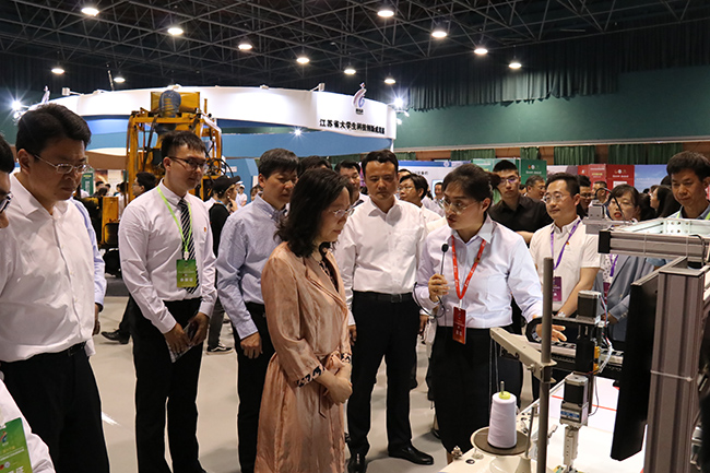 大赛期间举办了2019年江苏省大学生科技创新成果展览,来自全省26所高校的39件学生科技创新作品参展,pp电子官网计算机与软件学院的作品《机器视觉自动送料缝纫机》亮相现场,作品曾获2015年第十四届“挑战杯”全国大学生课外学术科技作品竞赛二等奖,这也是目前为止高职院校的最好成绩。江苏省副省长陈星莺、团省委书记王伟、省教育厅副厅长苏春海等领导莅临pp电子官网展区,计算机与软件学院毕业生吴琦蕾同学向陈星莺副省长介绍了作品,陈星莺副省长对作品功能实现情况进行了细致了解,并对pp电子官网大学生创新创业教育工作给予了高度评价。