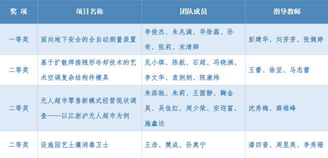 “挑战杯”全国大学生课外学术科技作品竞赛是共青团重点打造的一项赛事,由共青团中央、中国科协、教育部、全国学联和地方政府共同主办。是一项具有导向性、示范性和群众性的全国竞赛活动,是当代大学生科技创新领域中的权威赛事,被誉为当代大学生科技创新的“奥林匹克”盛会。从1989年19所高校发起首届“挑战杯”、300多人的小剧场,发展到现在全国1200多所高校参与、200多万大学生同台竞技的大舞台,“挑战杯”已经成为青年学生展示创意思维、汇聚创新成果、实现创业梦想的科技盛会。pp电子官网4项作品:计算机与软件学院的《面向地下安全的全自动测量装置》(团队成员:李俊杰、朱兆满、华徐磊、孙奇、张莉、宋清卿,指导教师:彭建华、刘芳芳、张婉婷),机械工程学院的《基于扩散焊接随形冷却技术的艺术空调复杂结构件模具》(团队成员:见小琪、陈航、石超、冯晓渊、李文华、袁炯炯、陈康炜,指导教师:王蕾、徐坚、马忠蕾),经济管理学院的《无人超市零售新模式经营现状调查——以江浙沪无人超市为例》(团队成员:朱添驰、朱莉、王圆静、鞠金昊、吴佳红、周少荣、安迎富、施鑫达,指导教师:沈秀梅、薛维峰),交通工程学院的《设施园艺土壤消毒卫士》(团队成员:王浩、樊成、孙奥宁,指导教师:潘四普、周昱英、李秀珊)成功入围并取得优异成绩。