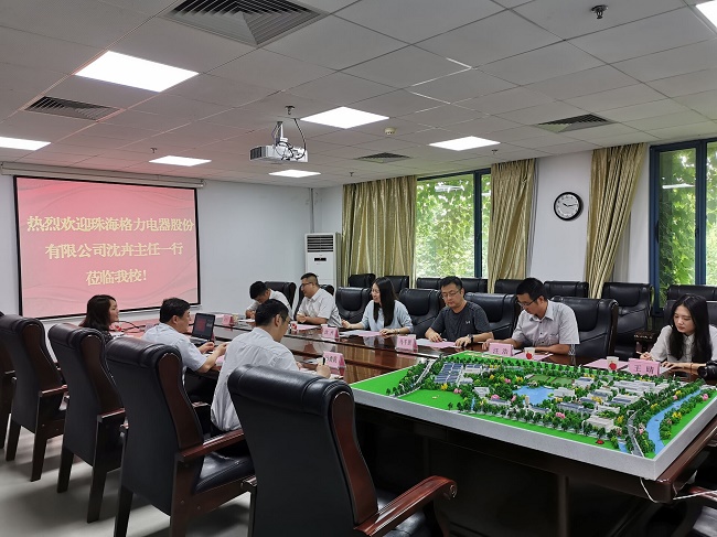 5月24日上午,珠海格力电器股份有限公司文化培训传播中心沈卉主任一行来pp电子官网交流工作。副校长崔新明、科技处、发展合作处人员参加了会议。