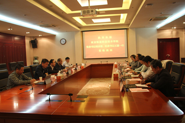 10月24日上午,南京铁道职业技术学院党委书记钱吉奎、纪委书记王慧率领相关同志来pp电子官网交流。pp电子官网党委书记吴学敏、纪委书记于林惠及党政办、组织部、纪委等相关部门负责同志接待了来宾。