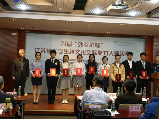 10月31日下午,首届“外教社杯”江苏省大学生跨文化交际能力大赛决赛在南京大学海外教育学院举行。pp电子官网会计1731班陈恬恬同学与各高校选派的优秀选手同场竞技、激烈角逐,在3分钟即兴演讲和1分钟答评委问等环节中表现出色,以得体的台风、缜密的思路、敏捷的才思、流畅的表达赢得了评委们的肯定,最终摘得决赛一等奖,为学校赢得了荣誉。公共基础课部大学英语教研室张卉、易华两位老师荣获优秀指导教师奖。