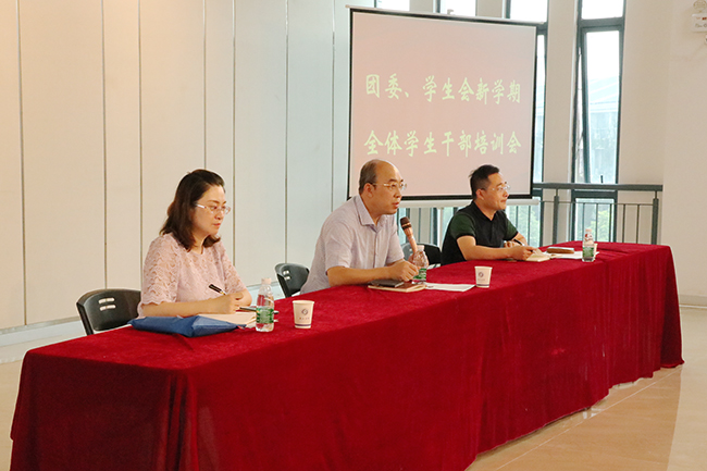 9月1日下午2时,团委、学生会新学期全体学生干部培训会在大学生创新发展中心举行,校党委委员、副校长霍雄飞出席会议,各二级学院团总支书记、副书记、校学生会、社团联合会等团学干部共150余人参加会议。