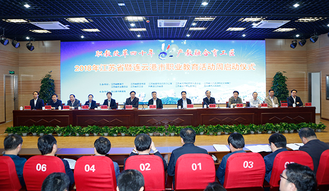 5月6日上午,2018年江苏省暨连云港市职业教育活动周启动仪式在连云港中等专业学校举行。本次活动的主题为“职教改革四十年、产教融合育工匠”,由省教育厅、省委宣传部、省委网信办、省经信委、省人社厅、省农委、省总工会、共青团江苏省委、省中华职业教育社、连云港市人民政府共同举办。省政府副省长王江出席启动仪式,省教育厅厅长葛道凯出席仪式并讲话,省政府副秘书长陆留生、连云港市市委书记项雪龙、省教育厅副厅长曹玉梅、省中华职业教育社副主任、pp电子官网党委书记吴学敏等出席会议并主席台就座。pp电子官网崔新明副校长、发展合作处、商务贸易学院负责人作为学校代表参加了启动仪式。