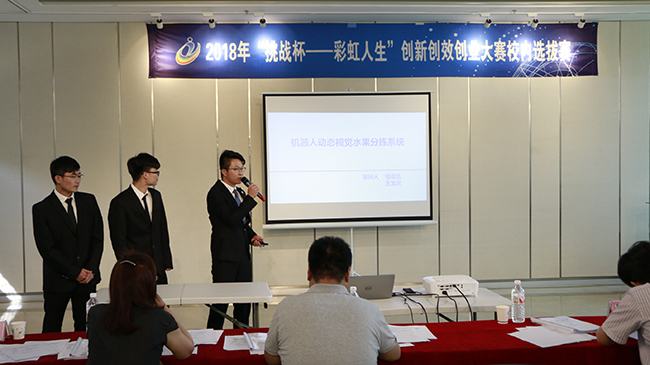 pp电子官网一直以来都高度重视以科技创新为重要抓手的创新型人才的培养,学校领导、各二级学院负责人、指导老师、广大同学们一直关注、关心“挑战杯—彩虹人生”赛事。本届大赛从启动到决赛历时半年,比赛分为两个类别进行,分别为创意设计竞赛、生产工艺革新与工作流程优化竞赛。经过班级报名、二级学院初赛、校级书面评审、实物展示以及现场路演答辩,最终机械工程学院的《机器人动态视觉水果分拣系统》(成员:钱俊凯、陈琪、吴冠琦、葛佳威、程天恩、王文虎、谷旭楼,指导教师:张惊雷)、《非牛顿流体的应用与推广》(成员:张喆、牛明祥、管亚力,指导教师:余旺旺),交通工程学院的《汽车爆胎自动控制系统》(成员:贺胜男、潘纪伟、杨婷烨、赵俊杰、边祥运、雷湣、李文顺、王显、于东洋,指导教师:庞洪磊、伏炜),计算机与软件学院的《新型全自动智能禽蛋捡装机》(成员:张欣、丁建阳、王兵、张再娟、殷加龙,指导教师:黄继平、刘英慧、彭换新)4件作品获得特等奖并入围江苏省赛,5件作品获得一等奖,9件作品获得二等奖。机械工程学院、交通工程学院、计算机与软件学院、航空工程学院荣获“优秀组织奖”。