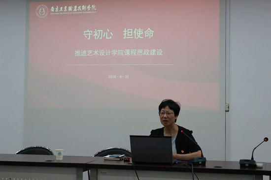 苏小冬副书记的报告以“守初心,担使命——推进艺术设计学院课程思政建设”为主题,围绕高校思政工作的重要性、课程思政该如何讲、课程思政该如何建设三个方面展开。苏小冬副书记认为,“课程思政”是学校完善“三全育人”体制机制的重要抓手,是培育社会主义建设者和接班人的重要载体。她强调,课程思政要深入挖掘各门课程所蕴含的思想政治教育元素和所承载的思想政治教育功能,把做人做事的基本道理、社会主义核心价值观的要求、实现中华民族伟大复兴的理想和责任融入课程教学中。苏小冬副书记结合艺术设计学院的专业特色,为学院推进课程思政提出了中肯的意见和建议。她希望艺术设计学院全体教师能够深入探索艺术专业人才培养与思想政治、道德教育有效结合之路,坚守自己的教书育人初心,从育人本质要求出发,抓住课程改革核心环节,充分发挥课堂教学的主渠道作用,着力将思政教育贯穿教育教学全过程,将教书育人落实到课堂教学主渠道。