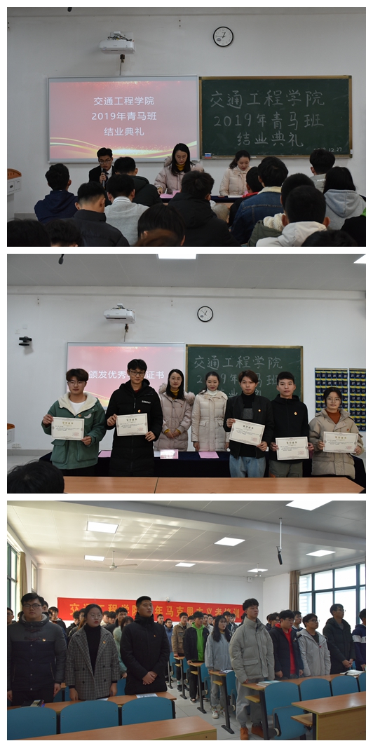 交通工程学院于12月27日在乐群楼310举行2019年青马班结业典礼。出席本次结业典礼的有交通工程学院团总支书记周嵘、辅导员佘燕文和青马班全体同学。