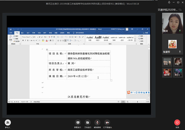 会议主题二是2020年省高校面上项目申报讨论模块。因今年疫情影响,2020年度省高校面上项目申报时间紧张,撰写申报书仅有短短一周时间。朱双华为鼓励学院科研人员申报,邀请2019年立项省高校面上项目的黄河老师作申报经验分享。黄河着重强调项目研究意义、发展趋势、创新点、参考文献等方面在撰写过程中需要注意的技巧及细节,她建议申报书采用精炼的方式阐述项目涉及领域的现状及未来发展情况的同时,多多加入自我对于该领域的历史、进展、核心问题的思考,从而增加申报书申报成功的概率。各位申报老师看完分享后纷纷表示深受启发,对自己近期撰写非常有帮助。朱双华在会议上提出要创造性地开展科研组织、管理与服务工作;要扎实推进重点科技任务的落实落地;要超前做好近两年的科研工作准备与谋划。他强调,要根据疫情期间学校关于基金项目工作整体安排,按照基金工作时间节点层层推进抓落实,高质量完成各类省部级基金项目申报工作;同时也要按照学院2020年科研工作的总体要求,凝练科研创新团队,优化科研平台布局,产出一批原创性标志性科研成果,进一步提高学院科研核心竞争力。