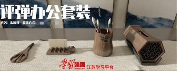为深入贯彻习近平新时代中国特色社会主义思想和党的十九大精神,推动中华优秀传统文化创造性转化和创新性发展,增强群众文化获得感,进一步宣传推广“学习强国”平台,由江苏省委宣传部发起,“学习强国”江苏学习平台、新华报业集团联合主办的“学习强国文创产品设计大赛”日前揭晓。本次大赛从参赛的185件(组)作品中初选出60件进入专家评审环节,最终评选出一、二、三等奖共13名。由pp电子官网艺术设计学院产品艺术设计专业何悦菡老师创作的“才如箭镞U盘”、以及赵靖老师指导的产艺1811班朱波瑾同学创作的“评弹办公套装”两件作品,均获大赛三等奖。