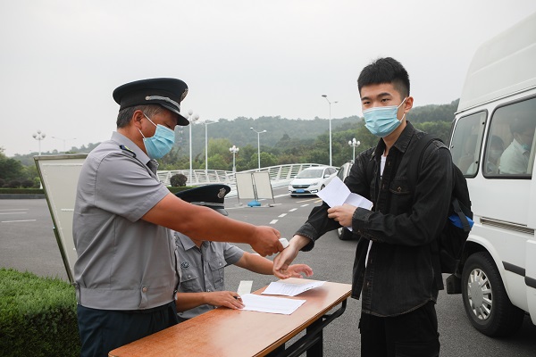 为落实防疫政策,学校组织开展考生和考务人员身体健康状况监测,组织专人检查2020届毕业生的健康码、近14天活动轨迹、近14天体温登记表。考试前一天对考点、考场、通道等考试区域进行全面消毒,并对考场所在教学楼采取封闭管理。考试当天安排大巴接送天堂校区学生参加考试,保证学生的交通安全。考试期间共设10个备用隔离考场、配备2名医护人员,为广大考生营造安全、安心的考试环境。