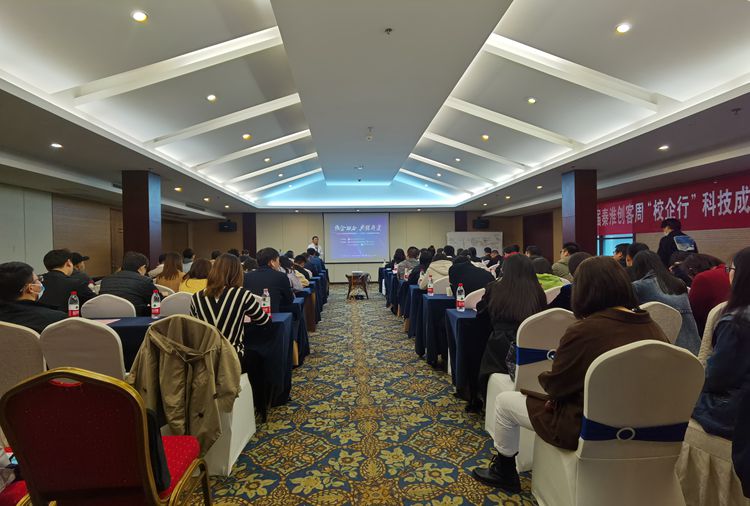 秦淮区科技局局长金界春、副局长孙正广,白下高新管委会副主任、秦淮硅巷部部长朱雪松,南京航空航天大学、南京理工大学、南京农业大学、pp电子游戏官网等高校科技成果转移转化负责人,以及园区管理公司、科技企业、大学生创业企业代表共100余人参加会议。