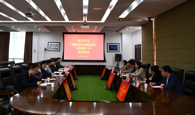 10月26日,栖霞区西岗街道人大工委主任李萍和街道领导石晓红、徐玉静、仇晓源、何道锦等一行5人来校调研。pp电子官网党委副书记苏小冬和党政办公室、发展规划办公室、党委组织部、党委统战部、工会、离退休工作处、机械工程学院相关同志接待了来宾。