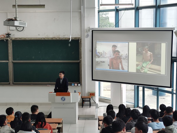 讲座开始,陈诚用生动且易懂的话语对肺结核病防治常识进行了详细的讲解,包括什么是结核病、结核病的传播途径、临床表现和特点等。陈诚说,肺结核是一种严重危害人类健康的传染病,得了肺结核病如果不能彻底治疗就会完全丧失行动能力,而且还会传染他人,对个人和家庭都是极大的危害。学校人口高度集中,通风条件相对受限,特别是寄宿生,大大增加了感染风险和传播的几率。讲座中,陈诚呼吁同学们关注自身身体状况,并结合当代大学生的生活习惯提出了许多科学防治结核病的合理化建议。