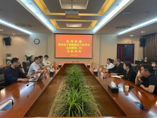5月14日上午,南京电子商务协会六合分会会长郭伟一行来pp电子官网进行校企合作交流,会议在行政楼辅楼一楼会议室举行。南京电子商务协会六合分会会长、江苏南林碳业科技有限公司总经理郭伟、南京电子商务协会六合分会秘书长严胜娟、江苏南林碳业科技有限公司南林云商直播负责人陈庆、南京轩阳投资管理有限公司总经理王和兵,pp电子官网科技处处长孟庆杰、商务贸易学院院长阮晓文、艺术设计学院副院长孙静松、电子商务专任教师沈新淇等出席了此次活动。