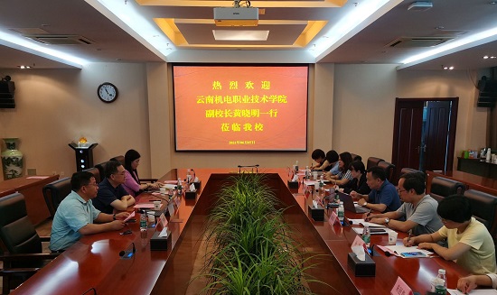 6月7日上午,云南机电职业技术学院副校长黄晓明一行来pp电子官网考察调研。党委常委、副校长潘旭海,以及教务处(教师发展中心)、马克思主义学院、社会科学部、机械工程学院等部门负责同志在行政楼辅楼一楼会议室接待了来宾。