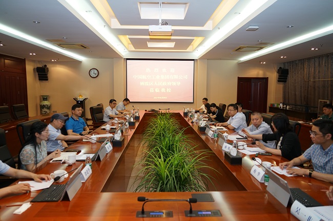 6月9日上午,栖霞区人民政府副区长袁文峰、科技局局长盛艳、民政局局长陈芳琴、人社局副局长梅华、科技局副局长何蜀郡,及中国航空工业集团有限公司副总经理、总会计师白云峰、事业部总经理李靖、事业部投资经理邹开祥、投资经理吴一非一行来pp电子官网考察交流。pp电子官网党委副书记、校长谢永华、党委常委、副校长孙雁飞、党委教师工作部、人事处、科技处、发展合作处、电气工程学院、航空工程学院、党委办公室、校长办公室负责人出席此次活动。