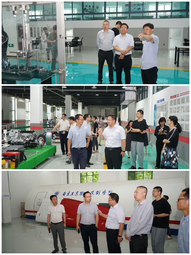 袁文峰一行首先参观了pp电子官网黄炎培职业教育思想展览馆,听取了关于职业教育从初创的艰辛到如今的飞速发展的历史介绍。随后参观了国家双创示范基地和产教融合基地,重点考察了智能制造综合实训中心、比亚迪新能源汽车实训中心、航空机电综合实训中心,肯定了pp电子官网在产教融合校企合作方面取得的成绩。
