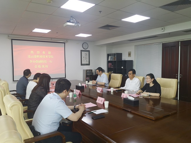 6月10日下午,连云港职业技术学院副校长李小蔚一行来pp电子官网考察调研。党委副书记马成荣,以及党委教师工作部、人事处、科技处、发展合作处等部门负责同志在行政楼401会议室接待了来宾。