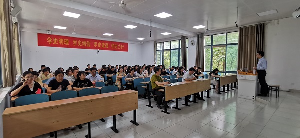 孙雁飞从新民主主义革命时期的革命斗争精神讲起,带领各位党员老师回顾了光辉的红船精神、井冈山精神、长征精神、抗战精神、延安精神等,又系统梳理了社会主义革命和建设时期的开拓创新精神和新时代的砥砺奋进精神,引导广大党员学习中国共产党百年光辉历史,继承发扬中国共产党在长期奋斗中形成的优良作风和光荣传统,赓续中国共产党百年奋斗孕育的红色精神。要求广大党员老师学会以史为鉴、以史为镜、以史为师,让红色血脉、红色情怀和红色精神薪火相传,通过学习党史筑牢生生不息的民族魂。