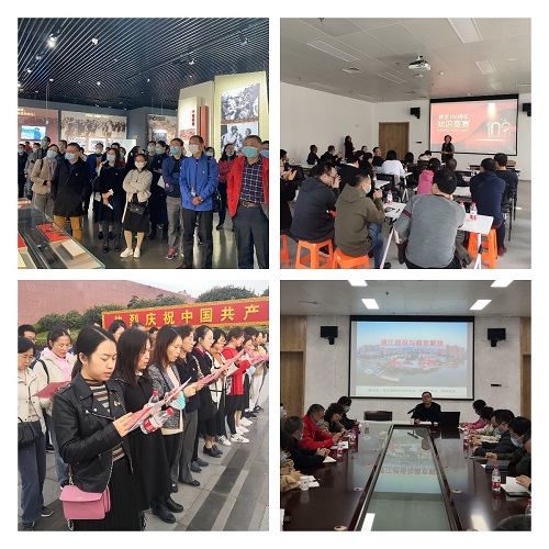 活动开始,党员教师们先后参观了“天翻地覆慨而慷——渡江战役胜利暨南京解放展”和“人间正道是沧桑——中国共产党南京历史展览”。在讲解员的生动解说下,馆内的图文材料、历史场景和珍贵文物,生动地再现了人民解放军取得渡江战役胜利的光辉历程,深刻阐述了中国共产党和中国人民为寻求真理进行的艰苦卓绝的斗争业绩。紧接着,在讲解员的带领下,党员教师们在胜利纪念广场瞻仰了红色群雕,面对雕塑,全体党员老师向党旗庄严宣读入党誓词。追溯红色经典,感受革命情怀,波澜壮阔的革命历程,革命先烈的丰功伟绩,使党员教师们深刻地感悟到红色经典所蕴含的时代内涵与革命情怀。