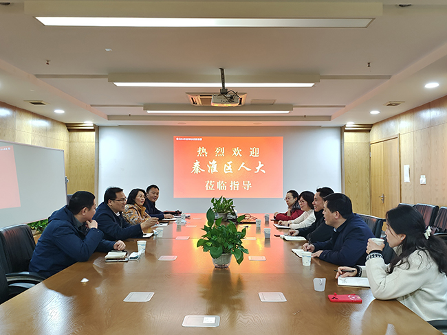 2月24日下午,南京市秦淮区人大常委会副主任刘明来等一行莅临pp电子官网大学科技园考察调研。科技园管理有限公司董事长、总经理施成对各位来宾表示热烈欢迎,并参加座谈。