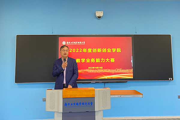 10月19日下午,创新创业学院在双创大楼A区216教室举行2022年学院教学业务能力大赛,校党委常委、副校长潘旭海莅临大赛现场,创新创业学院院长朱燕主持开幕式,特邀国际合作与交流处处长、港澳台事务办公室主任张海宁、商务贸易学院谈慧教授、电气工程学院张小明教授、创新创业学院督学郭鹰老师和贾薇薇老师担任评委。此次教学业务能力大赛包括教学能力比赛、微课比赛和说课比赛三个部分。大赛方案发布后,全院所有任课教师均积极参与到此项工作中来,认真进行大赛的准备工作,共提交微课作品4项,说课作品7项,组建两支教学能力参赛队伍。