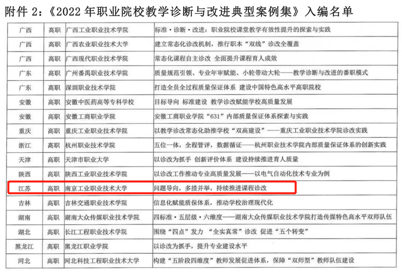近日,中国教育科学研究院、职业教育与继续教育研究所发布了《关于展示2022年职业院校教学诊断与改进典型案例的通知》,pp电子官网提交的双创课程诊改案例---《问题导向,多措并举,持续推进课程诊改》入编《2022年职业院校教学诊断与改进典型案例集》。
