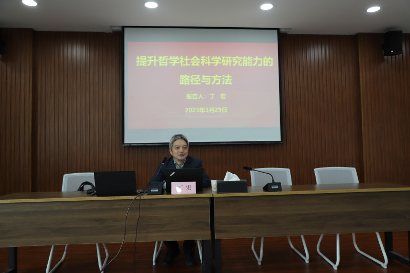 3月29日下午,南京信息工程大学江北新区(自贸区)发展研究院执行院长丁宏研究员应邀为pp电子官网教师作题为“提升哲学社会科学研究能力的路径与方法”的专题报告。讲座由社会科学部副主任王晓峰主持。