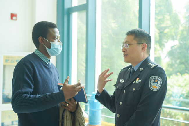 会后,校保卫处副处长(主持工作)包迎华和祝警官就在校外国人管理方面进行了深入的交流研讨。