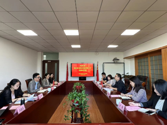 11月1日,浙江机电职业技术学院公共基础教学部副主任房利一行五人来pp电子官网,就公共基础课程的教学改革情况进行交流调研。pp电子官网公共基础课部主任金跃强、副主任江颖及相关教研室负责人在乐业楼426会议室接待了来宾。