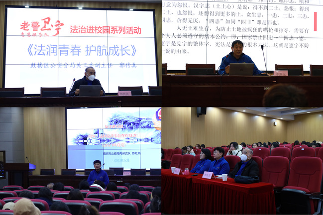 宣讲会上,南京市秦淮区公安分局关工委副主任李潮龙通过汉字说法的形式对法治教育、安全教育、交通安全教育、消防教育、国防教育、励志教育、科技教育、公私教育以及善恶教育等九个方面进行了逐一讲解,讲解旁征博引;南京市鼓楼区公安分局关工委副主任郭传真从宪法是什么、为什么遵守宪法、怎样遵守宪法三个方面进行了耐心解读,解读深入浅出;南京市公安局内保支队首席反诈专家陈红燕从诈骗表现形式、如何识诈防诈两个方面精准剖析,剖析入木三分。