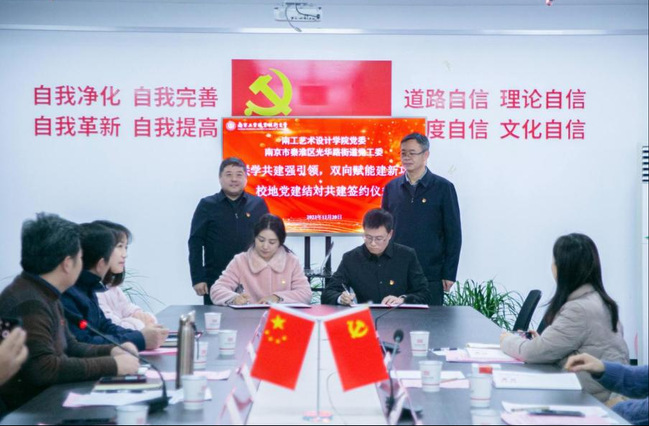 pp电子官网艺术设计学院党委与南京市秦淮区光华路街道党工委结对共建签约仪式现场