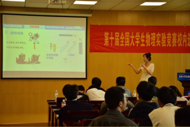 为激发学生对物理学探索热情、提升实验技能和创新能力,同时选拔优秀队伍参与第十届全国大学生物理实验竞赛,5月8日下午,在校团委的指导下,由公共基础课部和大学生物理创新社团主办的第十届全国大学生物理实验竞赛校内选拔赛在乐业楼428成功举行。公共基础课部党总支书记王丽丽、副主任江颖参加了本次选拔赛,大学物理教研室傅美欢、骞朋波、史建新和方俊担任本次选拔赛的评委。