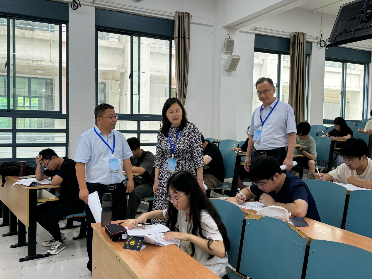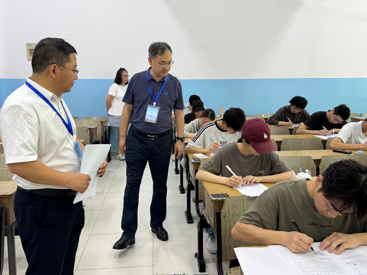 考试首日,党委常委、副校长魏萍、潘旭海带队深入乐群楼考点,对考试秩序、考场环境、考生纪律、监考教师履职等情况进行了重点检查。从巡考情况看,考场秩序良好、气氛严肃和谐;大多数学生能够提前到达考场、备好有效证件待查;监考教师均能恪尽职守、纪律状况良好。7月5日,潘旭海再次带队深入其他考点巡考,重点关注了监考教师履职尽责、学生遵守考试纪律、考场环境等情况。