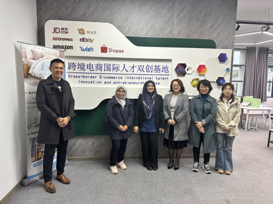 交流结束后,苏莲妮·阿卜·巴卡尔一行参观了商务贸易学院水晶跨境电商实践创新基地、家纺跨境电商实践创新基地等。