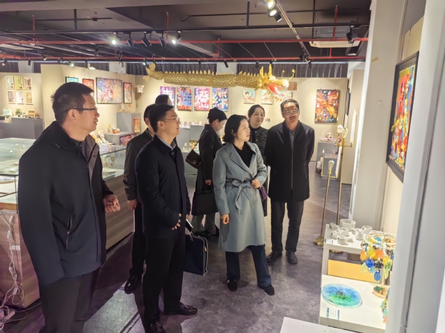 11月20日上午,六合区委常委、宣传部部长周娅,宣传部常务副部长、区新闻出版局(版权局)局长陈必权,文化旅游产业集团总经理吴庆明等一行来pp电子官网天堂校区开展调研交流活动。pp电子官网党委常委、副校长崔新明,党委常委、宣传部部长刘畅,艺术设计学院领导班子、系主任参加了座谈交流。